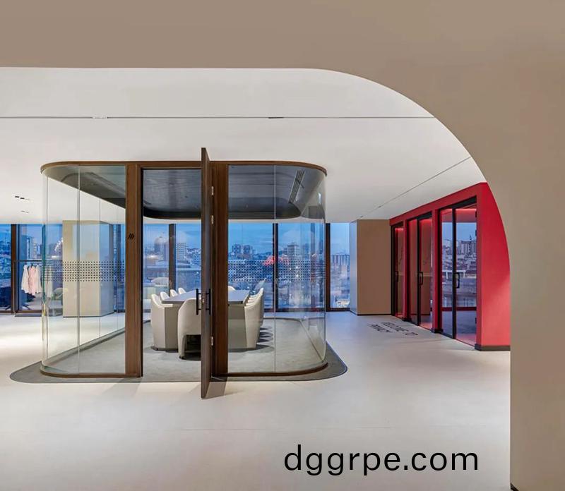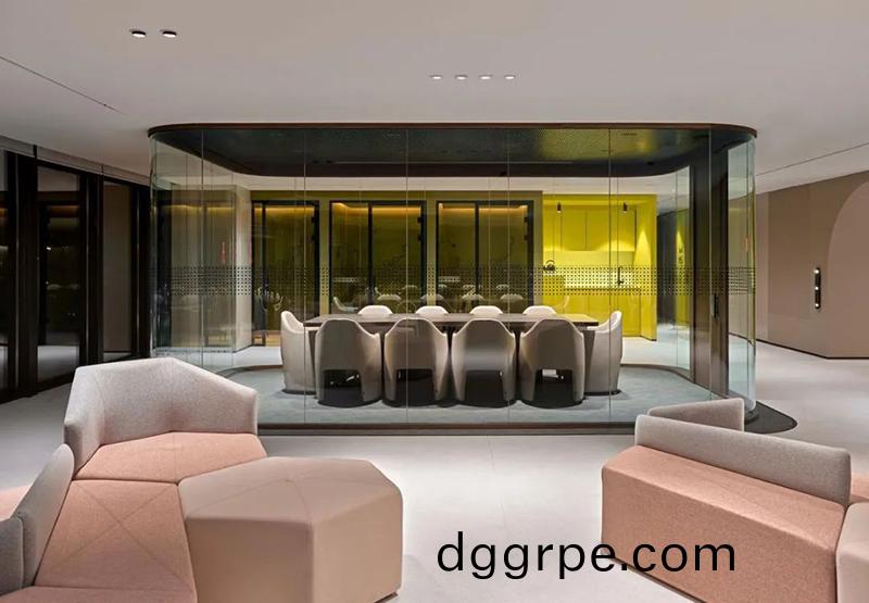 玻璃隔墙围合的会议室确保了隐私,而开放式的办公区则鼓励团队协作和创新。