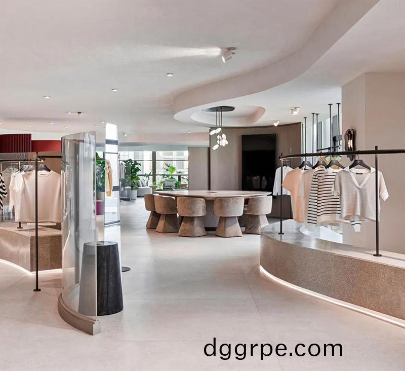 二楼则是生产区域,裁剪、缝纫、熨烫、储藏和技术区紧密相连,形成一条高效的生产线。