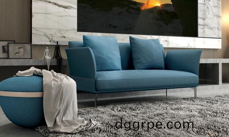 舒遇双人位沙发,尺寸:1500*780*780,材质:优质布艺,颜色:B-MC02蓝色流星格/B-MC01灰色流星格,标配说明:标配钢制沙发脚,车缝线,扶手外,背架外采用银灰色花式缝线工艺。