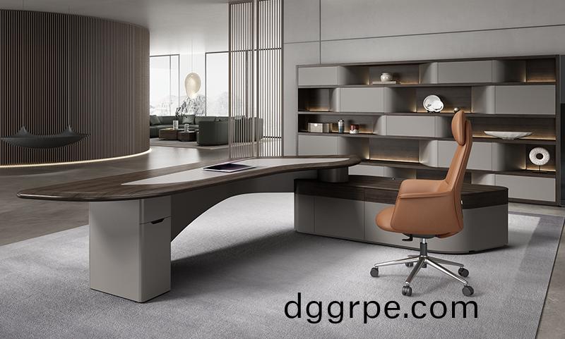 弧形台面与挡板,异形侧柜设计,错落有致的结合在一起;升降插座、皮质面板、抽屉分隔,极致的细节追求,造就完美的产品。