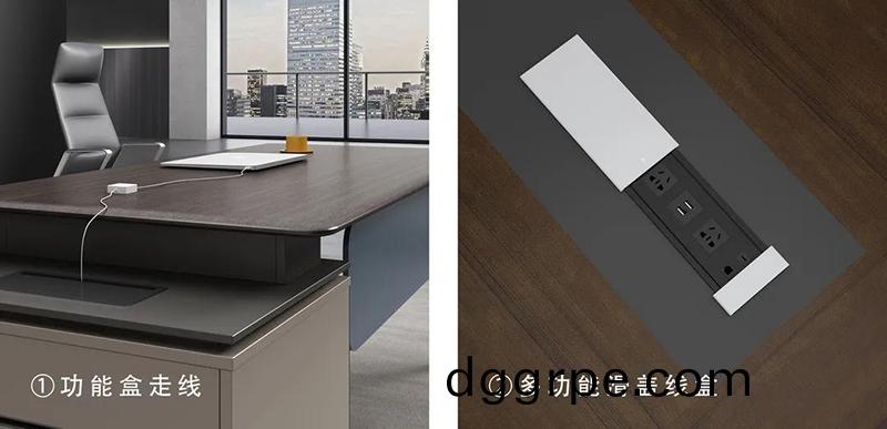 3.格调系列Y272班台高管桌侧柜台面悬浮设计,表面金属点缀更具设计感。