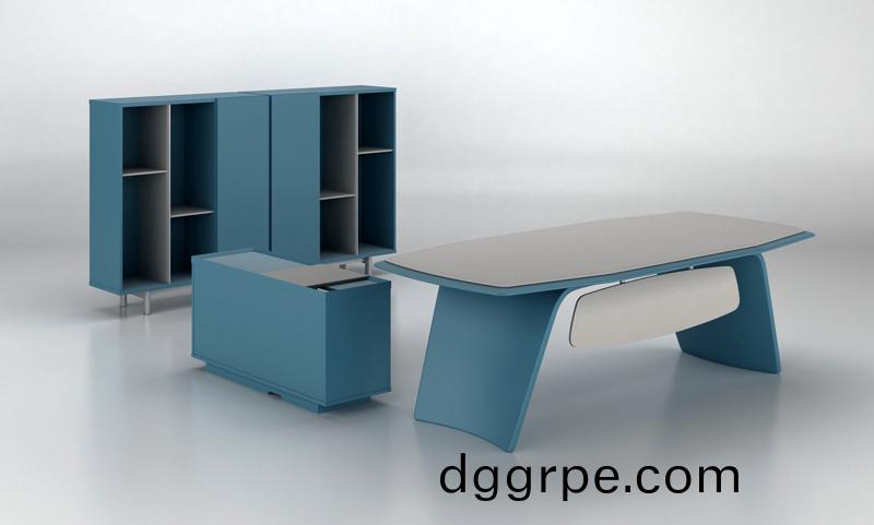 面材:采用摩登蓝油漆饰面,卡其色生态皮扪皮;