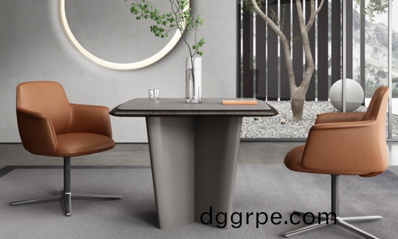 艾美系列洽谈桌,双层台面设计,温和的皮质,与自然的木材有序交叠,便有了这会客之道。