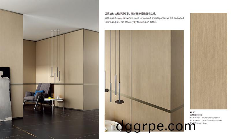 快装墙板系列,意大利的纹理设计 + 欧洲顶级钢板模具 + 欧洲顶级工业设备 = 最好的产品。科尔卡诺墙板出色的浸渍表层在各方面都表现的无懈可击,特别出色的是耐磨与抗划伤技术让产品经久耐用。一切都基于传统的精湛工艺技巧和天然材料制作而成的墙板, 打造出空间的舒适感。