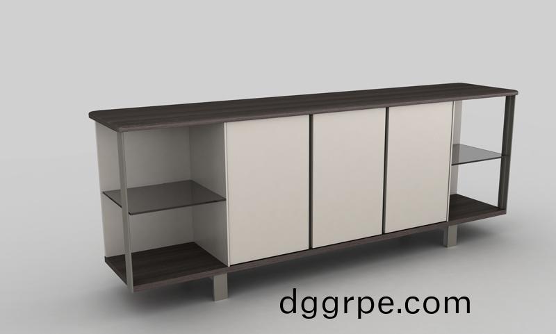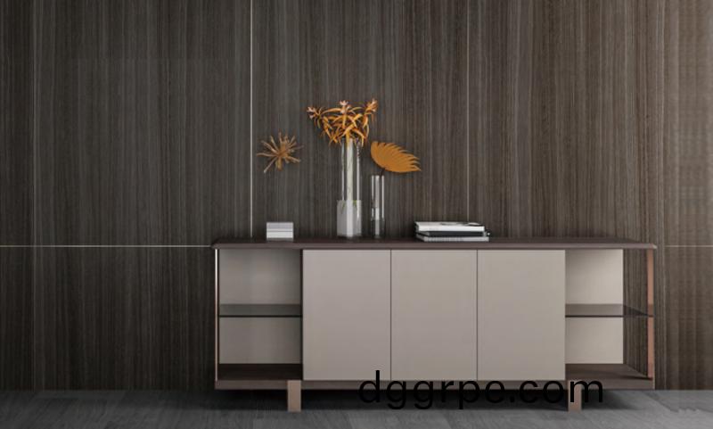 面材:采用天然直纹黑胡桃木皮饰面及卡其色浑水漆搭配;