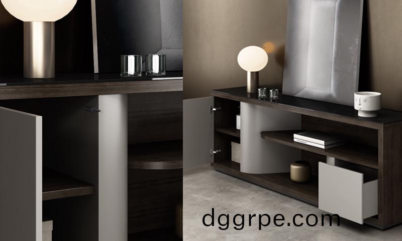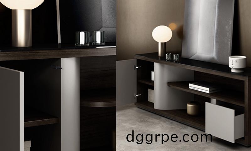 颜色:深灰核桃木油漆饰面+深卡其油漆饰面+黑色玻璃
