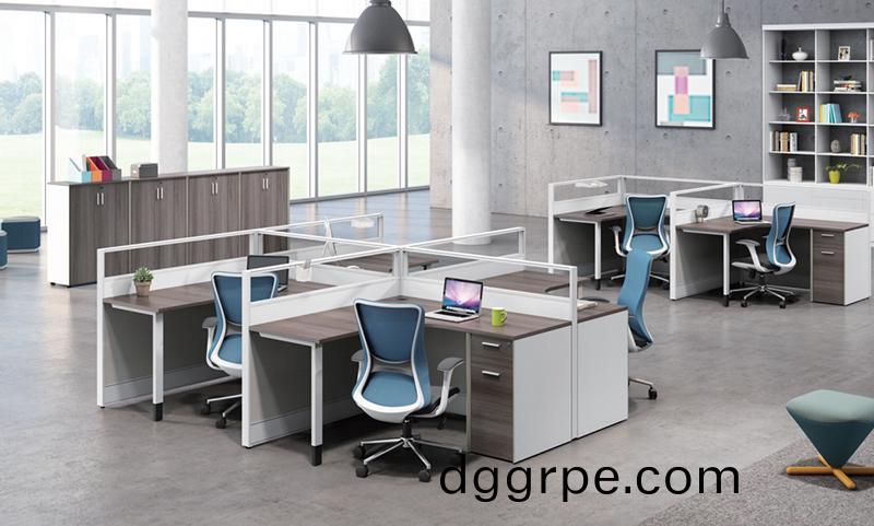 Thick&Thin系列4人工作位员工透明屏风办公桌—4人办公桌组合。