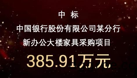 中标喜讯!科尔办公家具于近日中标中国银行股份有限公司某分行新办公大楼家具采购项目,中标金额: 385.91万元。该项目是继泉州银行办公家具项目后科尔办公家具品牌中标的又一个大型银...