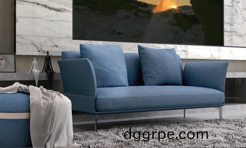 舒遇双人位沙发,尺寸:1500*780*780,材质:优质布艺,颜色:B-MC02蓝色流星格/B-MC01灰色流星格,标配说明:标配钢制沙发脚,车缝线,扶手外,背架外采用银灰色花式缝线工艺。